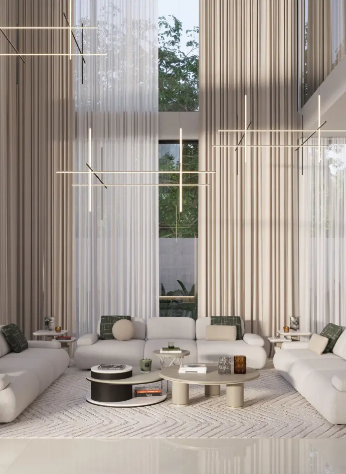 woods, natural stones, and a palette of neutral tones to create a luxurious aesthetic.
